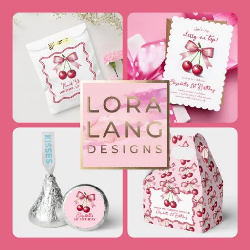 Girly Pink Coquette Cherry 1st Birthday CollectionCriado por Lora Langowski