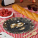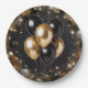 Prato De Papel Aniversário de Balão de Brilho Preto e Dourado Ele
