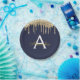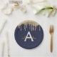 Prato De Papel Aniversário de Monograma com Brilho Azul Marinho e
