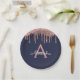 Prato De Papel Aniversário de Monograma com Brilho Azul Marinho R