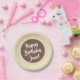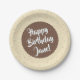 Pratos de Papel de Aniversário de Sorvete Marfim - Personalize sua mensagem nestes pratos de papel de aniversário que têm um design de confeitos e cone de sorvete marfim. Borda de sorvete super fofa com centro de cone waffle. Na personalização, há mais duas cores de padrão de waffle para escolher.