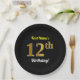Prato De Papel Aniversário do 12 Dourado preto, preto + nome pers