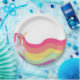Prato De Papel Aniversário do Arco-Íris Mágico Vibrante