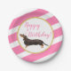 Prato De Papel Aniversário do Black Tan Dachshund Pink