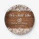 Prato De Papel Aniversário do Casamento Rustic Wood & White Lace
