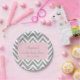 Prato De Papel Aniversário do Chevron, Branco e Pastel Rosa