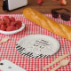 O design do produto apresenta gêmeos coelhos e fitas esbranquiçadas. Este adorável desenho animado com listras faz pratos de papel bonitos, clássicos, modernos e únicos com texto personalizado para crianças, anos, chás de fraldas, ou quaisquer outras ocasiões especiais!
