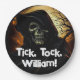O crioulo sombrio com a sua face esquelética e um fundo sinistro constituem esta design assustadora que diz, "Tique, tock, nome."