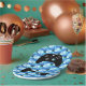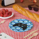 Preparando guardanapos de papel de festa de aniversário com pixels azuis e cinzas.