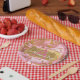 Prato De Papel Aniversário do Mármaco Elegante de Folha Rosa e Do