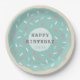 A placa de papel de aniversário deste menino fofo apresenta uma rosquinha verde de menta com borrifações em um fundo verde de menta clara. Personalize para suas necessidades. Você pode encontrar mais produtos correspondentes na minha loja.
