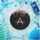 Prato De Papel Aniversário do Monograma Brilho Dourado Rosa Preto