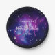 Prato De Papel Aniversário do Monograma Celestial Roxo