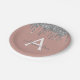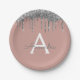 Prato De Papel Aniversário do Monograma da Lata Rosa Esbranquiçad