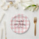 Prato De Papel Aniversário do Monograma Gingham, Rosa e Branco