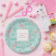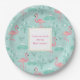 Prato De Papel Aniversário do padrão verde Pastel Pink Flamingos