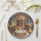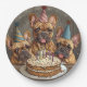 Ótima ilustração de Bulldog Francês celebrando um aniversário vestindo chapéus e comendo bolo. Perfeito para amantes de animais de estimação ou pais de cães.