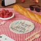 Um design de aniversário de estilo atômico vintage para celebrações de festas de aniversário de homens e mulheres que amam o estilo de arte abstrato kitsch dos anos 50. Personalize-o adicionando seu próprio nome.