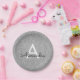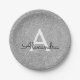 Prato De Papel Aniversário do Silver Glitter & Sparkle Monograma