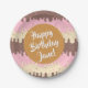Aniversário do Sorvete napolitano - Personalize a sua mensagem nestas placas de papel de aniversário que têm um aspereador e um design de sorvete napolitano. Três sorvetes napolitanos super bonitos, de cor comum, com aspersores e um cone de waffle. Na personalização, há duas outras cores de padrão de waffle a serem escolhidas.