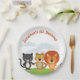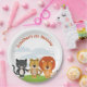Chapas de papel de aniversário para Amigos Animais. Design tem 3 animais bonitos. Fornecimentos de terceiros para a coleção de aniversário correspondente.