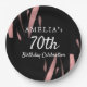 Placas de Papel de Aniversário Feliz, 70 de Cor-de-Água, cor-de-rosa-rosa, preto Elegante. Personalize com seu nome e sua idade.