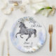 Jovem pratos de papel personalizado de galopagem Appaloosa, selvagem e livre, com flores azuis empoeiradas, para meninas que amam cavalos, cavalos temem aniversário.