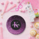 Prato De Papel Aniversário monograma de luxo em brilho rosa roxo