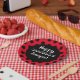 Prato De Papel Aniversário Personalizado da Bolinhas Preta e Verm
