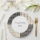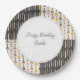 Prato De Papel Aniversário Rosa e Cinza Personalizado