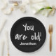 Divirta-se com alguém no seu aniversário ou em outra ocasião com este prato de papel humorístico, sarcástico e sarcástico que diz "Você é Velho" e personalizado com um nome. Estes pratos vão trazer diversão e risos. As palavras estão em texto branco a preto. Você pode personalizar para torná-lo totalmente seu para um presente único. Estes pratos se coordenam com outros suprimentos de festas como guardanapos de papel e xícaras Se divertem com esta palavra arte.