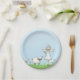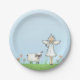 Prato De Papel Anjo da menina e cordeiro, azul, religioso