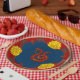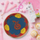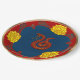 A imagem de um cobra é um tema comum na Arte Chinesa. Para suas refeições do partido, esta placa redonda de 9" em vermelho profundo, azul marinho, amarelo e ouro, combina temas orientais e Art Nouveau para um surpreendentemente original e belo design de Leslie Sigal Javorek.