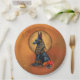 Anubis in the moonlight, Divine repose beneath the moon. Anubis sits in a serene, dignified pose, emphasizing his role as guardian of the dead and god of embalming. His head is characteristically designed with a sharp, elegant jackal's head, symbolizing the animal form. Behind Anubis, a large, bright yellow moon rises, dominating the night sky and creating a mystical atmosphere. The moon shines softly, highlighting the god's silhouette while conveying an air of magic and mystery.