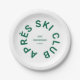 Après Ski Club, resort de esqui verde inverno crista, pratos de papel. Personalize com o ano da sua viagem de esqui, nome do resort de esqui e localização. Perfeito para uma viagem de esqui de grupo ou para uma festa de solteiro ou despedida de solteira com tema après ski. Projetado para combinar com nossa Coleção Après Ski Club.