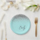 Prato De Papel Aqua Azul Teal Prata Brilho Monograma