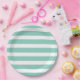 Prato De Papel Aqua e Stripes Brancas