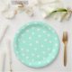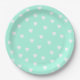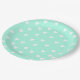 Prato De Papel Aqua Menta com Padrão de Corações Brancos Fofos