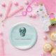 Trendy and legal Watercolor Skull Halloween Paper Plates com uma clara cor de água turquesa e um crânio assustador. Essas placas únicas e modernas podem ser facilmente personalizadas com sua própria saudação assustadora de Halloween. Localize mais opções de personalização clicando em Personalizar.