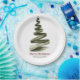 Prato De Papel Aquarela Verde-Árvore Elegante de Natal