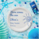 Como vocês podem ver este verão único e elegante aqui vem a placa de papel do chá solar tem um modelo bem projetado. Com a mão azul desenhada pelo sol manuscrito nome e data em azul. E creme de fundo. O que você pode personalizar facilmente ao clicar no botão personalizar.