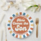 Prato De Papel Aqui vem o Filho Retro Groovy Chá de fraldas Birth