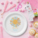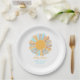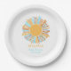 Chapas de papel personalizadas. Projetado com um Sol retroativo em amarelo alaranjado com raios solares azuis claros. Procure nosso tema de sol boêmico para correspondência de artigos de papelaria e de festa. Napkins, convites, obrigado cartões, chá de fraldas.games e muito mais