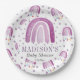 Prato De Papel Arco-Íris Roxo Chá de fraldas Personalizado