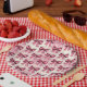Prato De Papel Arcos de Xadrez de Natal rosa