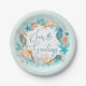 As chapas de papel da época de Natal das orlas costeiras ou da praia, com as cores do mar, estrelas, conchas e ornamentos acentuados com ícones falsos de brilho e as saudações SEAS & GREETINGS na tipografia moderna escrita à mão em turquesa, teal, ouro castanho e branco sobre a sua cor de fundo (mostrada em turquesa clara). OPÇÕES: O exemplo é mostrado na placa redonda de 7 polegadas—outros tamanhos e formas estão disponíveis na página de pedido ou você pode transferir o design para outro produto. ASSISTÊNCIA: Para obter ajuda com a modificação ou personalização do design, alteração de cor, redimensionamento, transferência do design para outro produto ou, se você quiser coordenar itens, entre em contato com o designer ANTES DE PEDIR através da guia MENSAGEM de bate-papo Zazzle abaixo ou envie um email para makeitaboutyoustore@gmail.com.