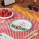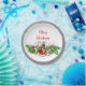 Este prato de papel com desenho festivo de Natal é ideal para a sua festa de fim de ano. O arranjo elegante apresenta uma combinação de doces, flores de poinsettia, galhos de árvore de Natal e flocos de neve. A borda de glitter prateado realça a sofisticação. Use este prato de papel para casamentos ou outras ocasiões formais de Natal. Personalize o texto com as suas palavras.