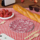 Prato De Papel Art Nouveau Carnação Damask, Red and White