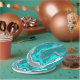 Bolas de papel fluido de mármore azul, lacre e turquesa.