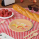 Design de arco-íris laranja com estilo retrô bonito e cor-de-rosa e amarelo. Design de temas de Arty e Boho para cores quentes de Verão.
